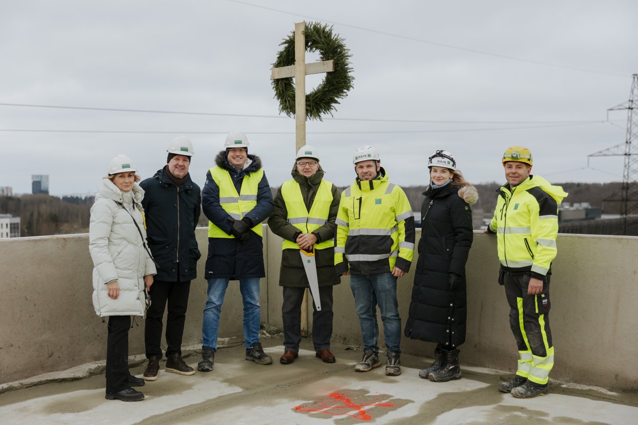 Ehitajate tee 105 kerkiva NORA by Perton Living arenduse ehitus on jÔudnud mÀrgilise verstapostini - 19. detsembril pidasime maha meeleoluka sarikapeo. Sellega tÀhistasime hetke, mil hoone on saavutanud oma lÔpliku kÔrguse.
