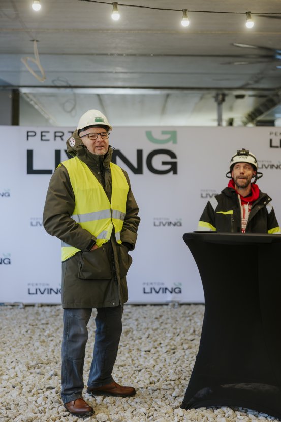 Hannes Tall, Perton Livingu majutusteenuste juht toob vĂ€lja: âSelline tempo annab kindlustunde, et oleme igati ajagraafikus ja esimesed ĂŒĂŒrilised saavad sisse kolida lubatud ajal, juba 2026. aasta suvel.â